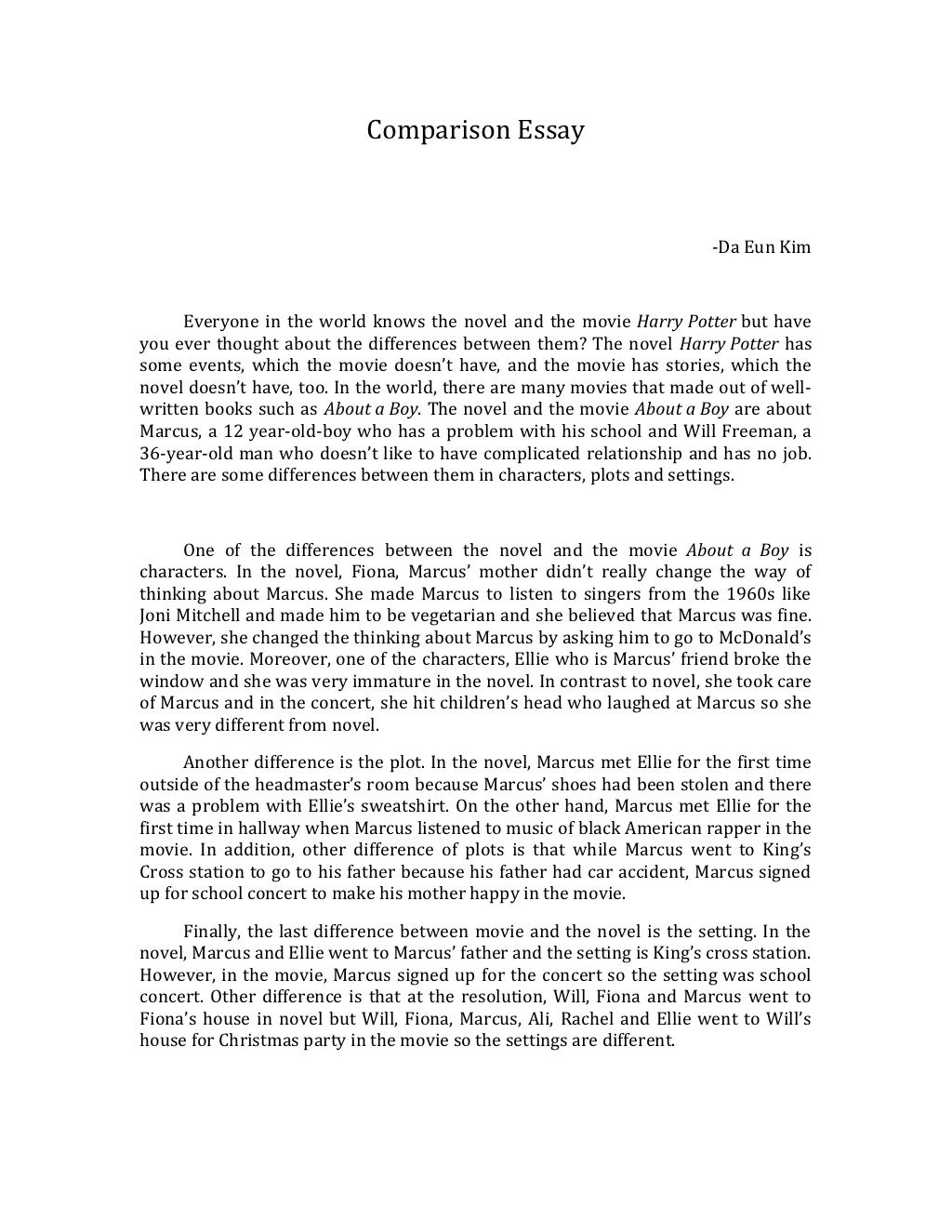 A comparative essay asks that you compare at least two (possibly more) items. These items will differ depending on the assignment. You might be asked to compare positions on an issue (e.g., responses to midwifery in Canada and the United States) theories (e.g., capitalism and communism) figures (e.g., GDP in the United States and Britain) Text Compare! is an online diff tool that can find the difference between two text documents. Just paste and compare Compare and contrast essay is a common type of academic writing. This type of essay is based on analyzing the similarities and differences and contrasting two subjects. Writing a compare and contrast essay is not a difficult task like an argumentative essay if you follow proper guidelines. It needs a proper structure and outline